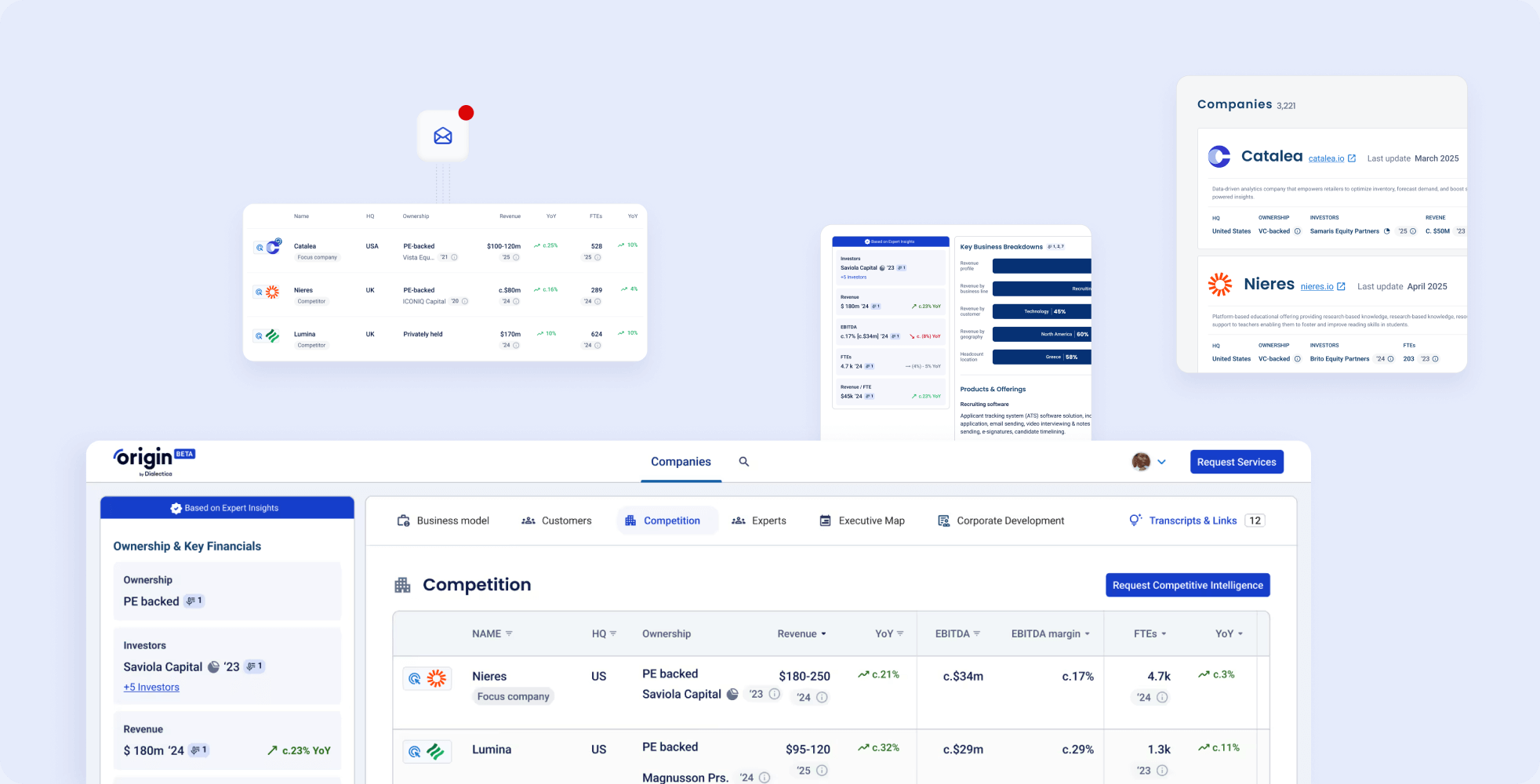Move beyond raw data and generic reports. Origin is the definitive source for qualitative deal intelligence, providing the critical context that data tables miss. Our platform of expert-vetted company snapshots is designed to enrich your deal pipeline, whether you're in Private Equity, Venture Capital, or Corporate Strategy. Use our insights to validate opportunities, build conviction faster, and feed actionable deal sourcing intelligence directly into your CRM.